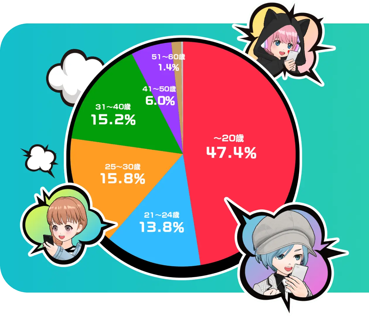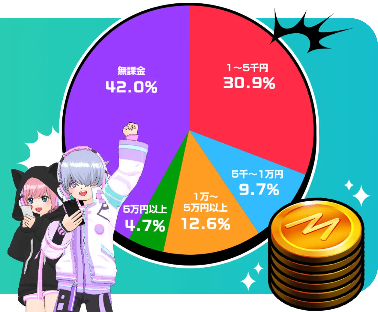 A high percentage of Mirrativ users are adults, with about 30% of users between the ages of 25 and 40. Also notable that a large number of users are passionate enough to spend money on games every month.