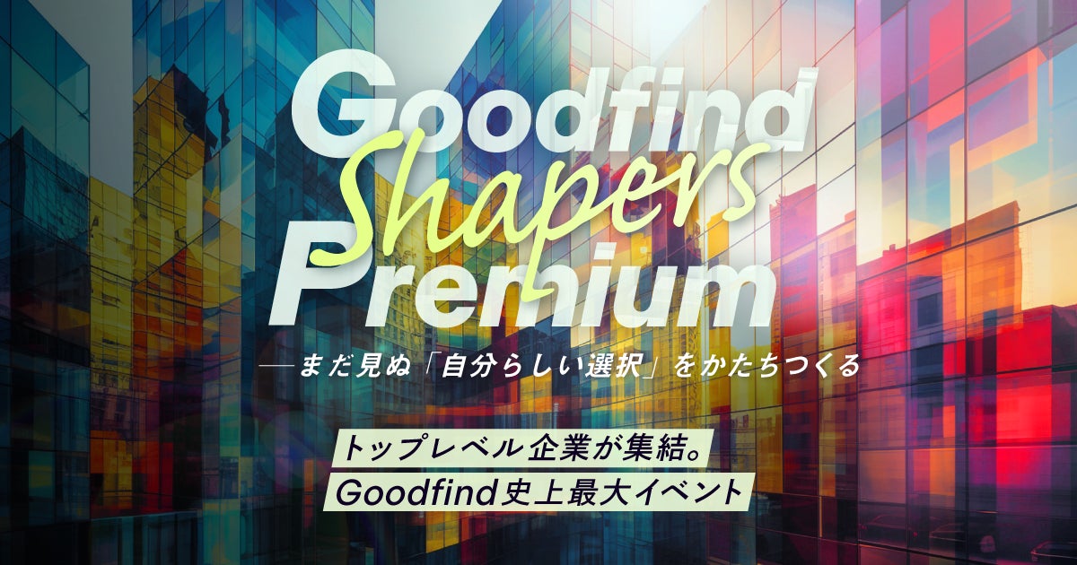「Goodfind Shapers Tokyo」は、正解がない時代において、自らをかたちつくるための大型オフラインイベントです。社会と産業をかたちつくり時代を拓いてきた“Shapers”にお集まりいただき、何を思い、何を成し遂げてきたのかを、真摯に語っていただきます。それだけでなく、次代を担う多様な企業と学生が接点を持つ機会を生み出す場や、社会人になってからも活かせるスキルを身につけられるセミナーも同時開催。Goodfindのすべてをつぎ込んだ、史上最大規模のイベントです。